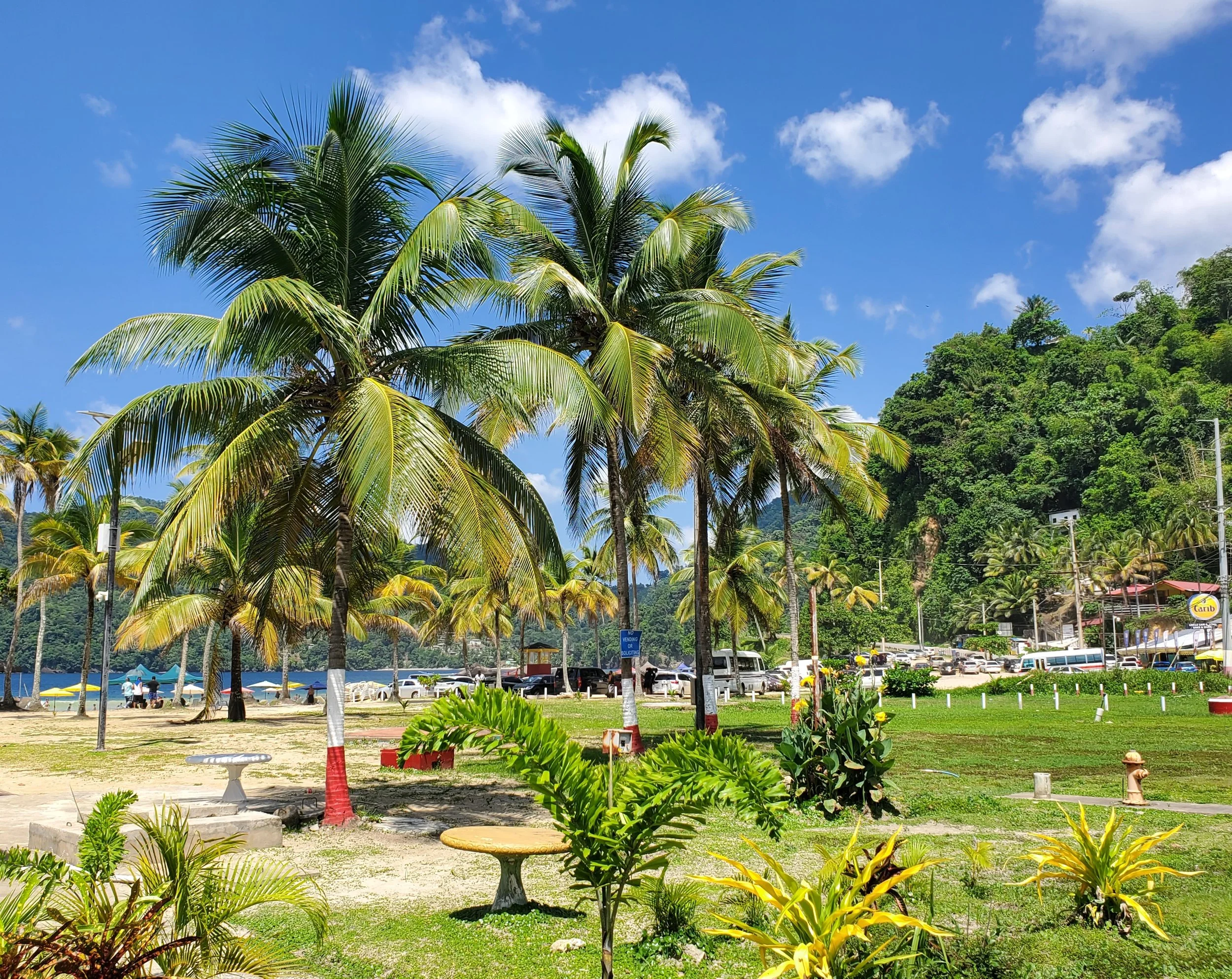 With an idyllic view, beach lovers and other visitors can swim and surf before enjoying several local tasty foods, including bake and shark, along with a Carib beer.